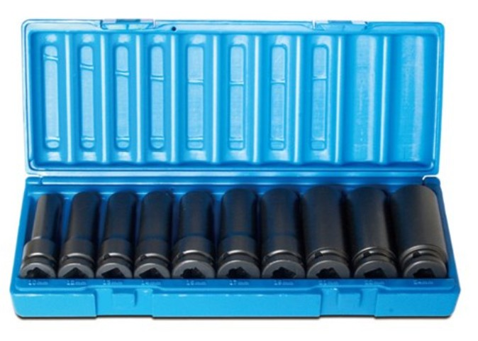 10 Pieces 1/2 Drive 6-Point Metric Deep Socket Set