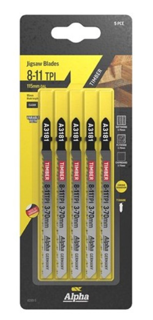 Alpha Jig Saw Blade CV, 115mm, Ground, Euro shank (x5)