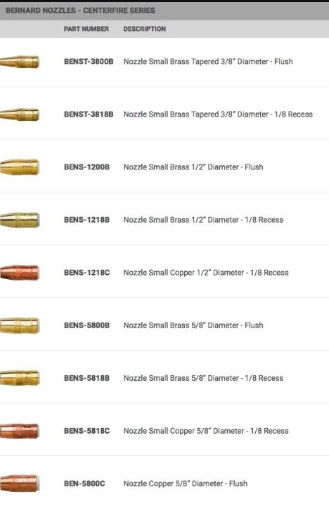 Bernard Centerfire Nozzle Small Brass Tapered 3/8Ó Diameter - 1/8 Recess