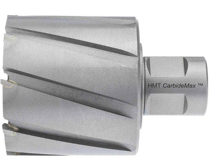 Adapters are available to convert the 31.75mm shank for use with standard 19.05mm weldon shank Magnet Drills. The HMT CarbideMax range uses Premium Grade Sandvik Tungsten Carbide teeth, one of the hardest materials available for use in cutting tools. This means cutters are capable of drilling through the toughest steels whilst maintaining their strength & cutting surface for up to 10x longer than traditional HSS cutters. The elaborate geometry of CarbideMax broach cutters means the teeth of the cutter do all the work. This reduces strain on the tool body and means that a strong but thin flexible alloy can be used for its construction. Thinner walls means CarbideMax tools need to remove less material from the work piece resulting in a faster cut and quieter, easier drilling. Greater job site efficiencies and fewer stops as fewer tools are reordered and replaced. CarbideMax - Longer life, faster cuts, ultimate value for money