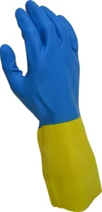 In StockNeoprene Latex Glove Maxisafe Advantages • 30cm Dipped blue neoprene palm over latex rubber for increased chemical resistance • Good resistance to bleaches, detergents, alkalis and vege oils • Excellent puncture and tear resistance • Textured palms and fingers for improved grip in wet environments • Flocklined for comfort • Available in sizes M, L, XL & 2XL Applications • Domestic kitchen & garden use • Food processing plants • Light assembly & maintenance • Laboratories & janitorial