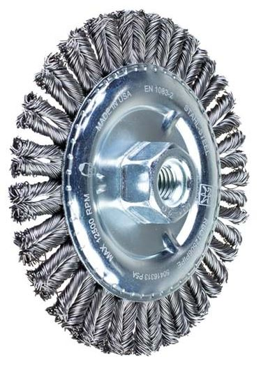 In StockBRUSH PIPELINE RBG 22.2 125MM TWIST KNOT An aggressive and robust brush that is able to withstand high mechanical loads. Perfect for heavy-duty brushing in pipeline and container construction. This extra slim brush design is ideal for work in hard-to-reach places e.g. root weld seams. Recommendations for use: - Optimum results with high-performance angle grinders