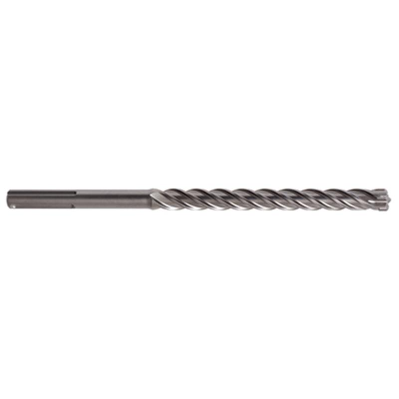 In StockDynamic drilling ability with secondary cutters protecting the drill bit in the event of reinforcement collision The one-piece, solid carbide tip and patented reinforcing chamfering ensure low vibration and optimum drilling performance when drilling into reinforcing steel Thanks to optimum 4 x 90° symmentry, all four carbide cutting edges function evenly and do not seize up on hitting reinforcing steel Laterial support and maximum possible area of the interface between the carbide and steel body compensate for torsional forces Centring tip for straight forward spot drilling with pinpoint accuracy Four symmetrically functioning spiral ridges ensure low, uniform flute wear Optimised flute core strength ensures low vibration drilling performance and exceptional fracture resistance The high-volume flute geometry ensures the optimum removal of drilling dust 4 Cutter head prevents seizing when drilling through reinforcing steel Penetrates through steel deck plate eg Bondek® and concrete in one easy process