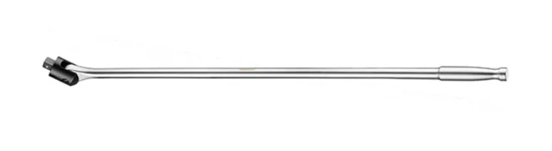 The TengTools 990 mm 3/4" swivel-head Breaker bar is meticulously crafted to meet the rigorous demands of professionals in the automotive, maintenance, and engineering sectors. Made with robust chrome vanadium steel and conforming to DIN 3122 standards, this tool is engineered for reliability and durability, with a minimum torque capacity of 1412 Nm. Its ball detent retainer ensures a secure fit during high-stress applications.