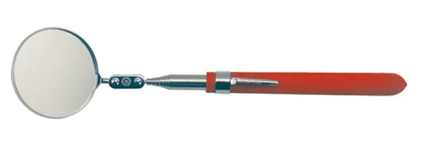 An inspection tool with a fully adjustable, 57mm diameter round mirror that extends to a maximum length of 85cm to help view hard-to-reach areas.